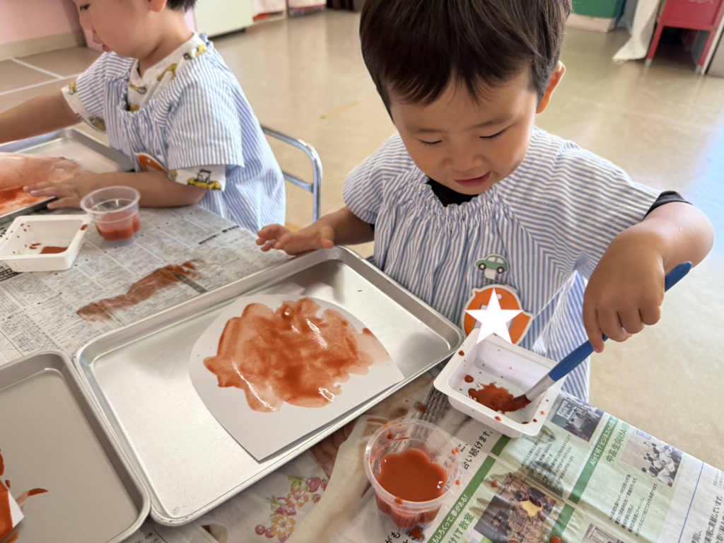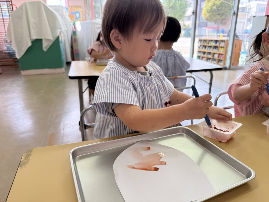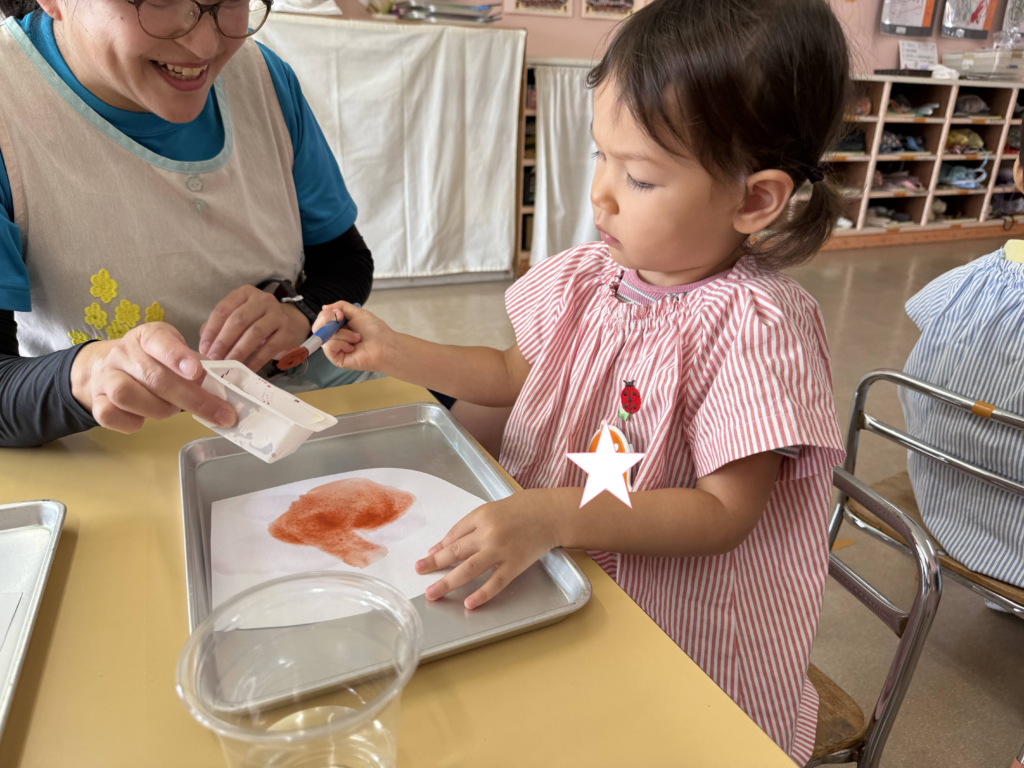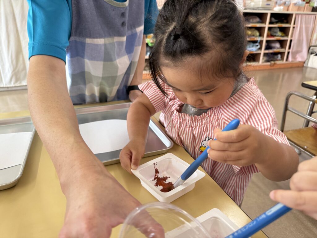 今回は、自分たちで水の量を考えて、色作りをしてもらいました★