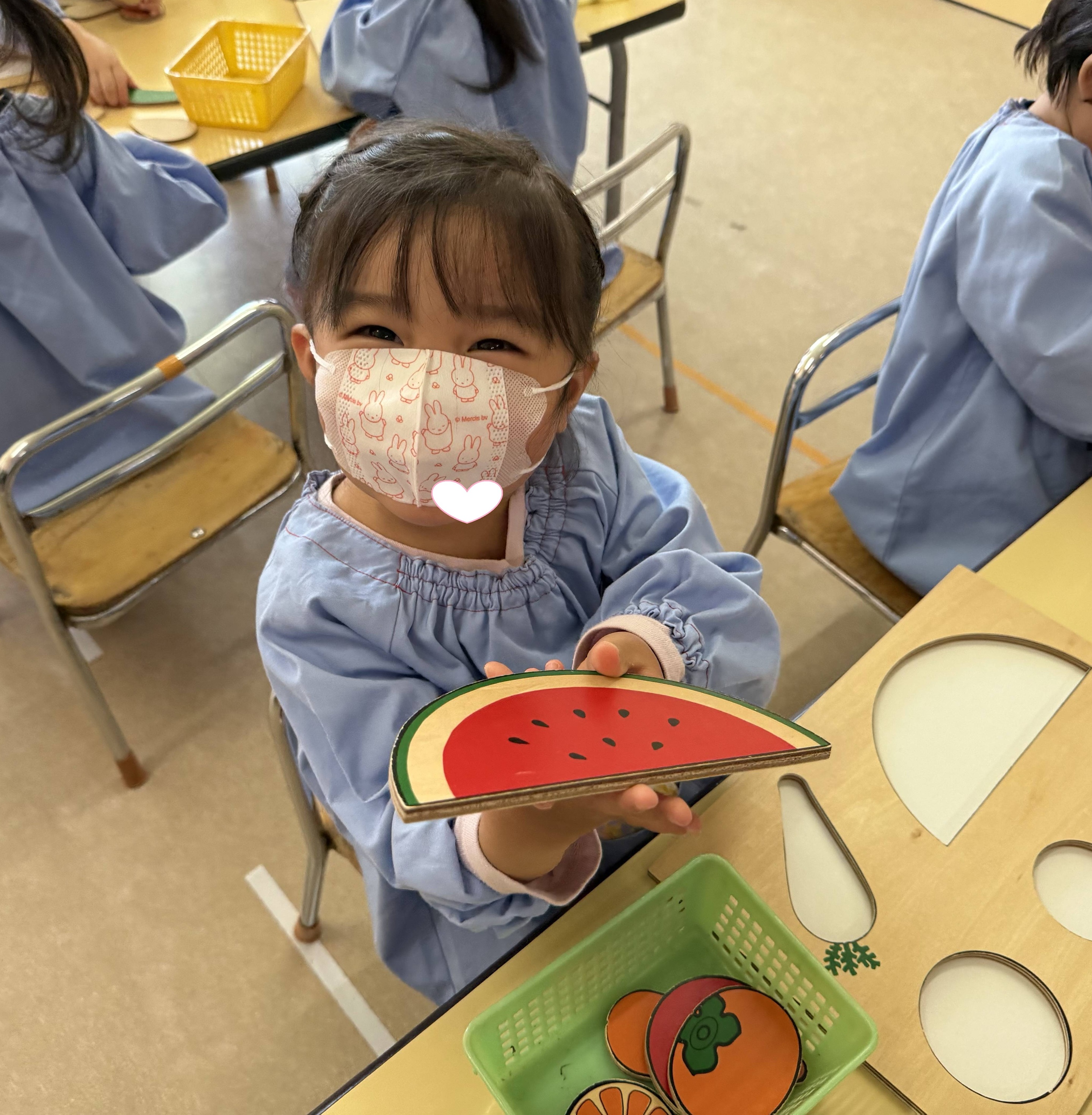 「スイカはここじゃない?」「これはバナナかな?」と、意欲的。