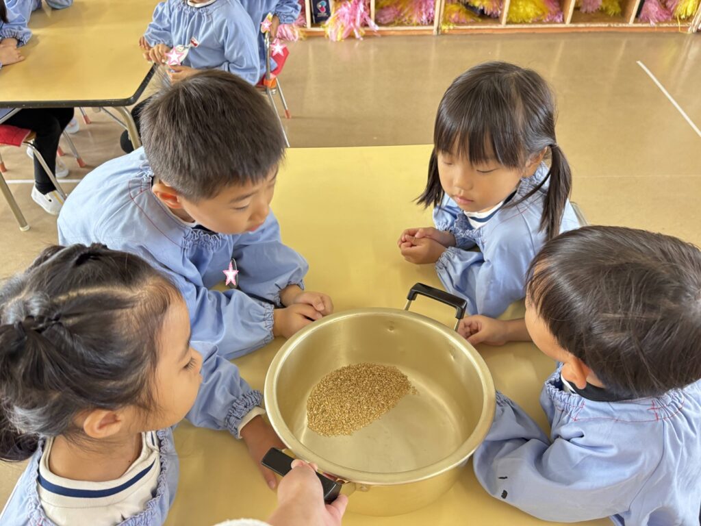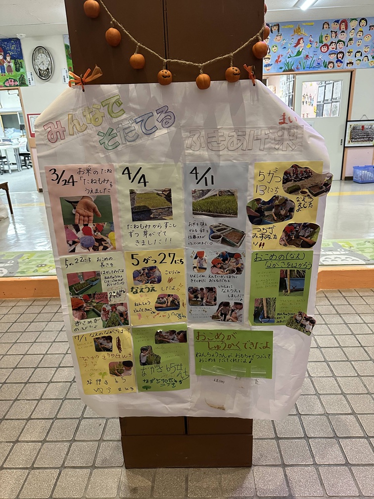 今年の3月にお米の種「たねもみ」をみんなでまいた幼稚園のお米。