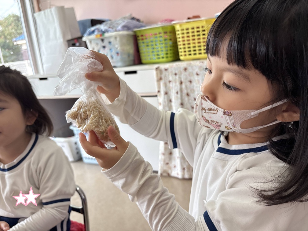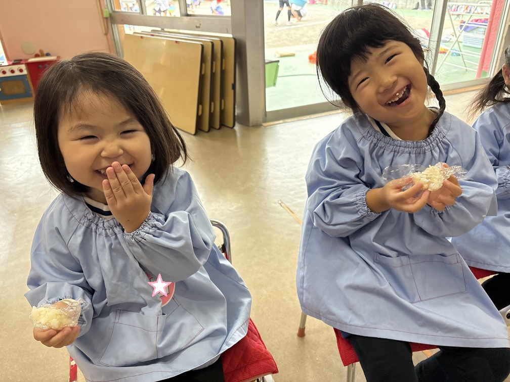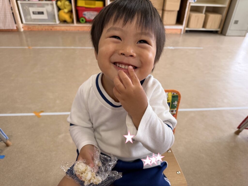 運動会の前日である今日、みんなが元気に運動会を迎えられるように、おにぎりにしてクラスでいただきました🌟