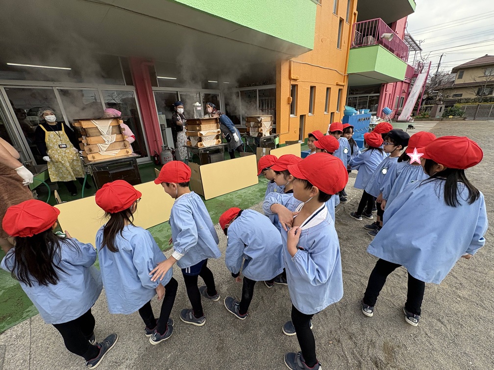 登園した子ども達が目にしたのは、もくもく・・・と蒸気。