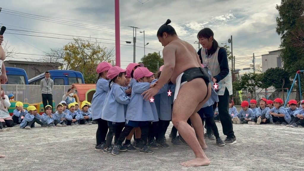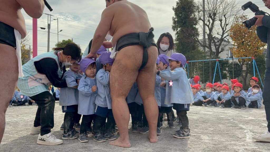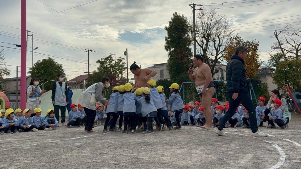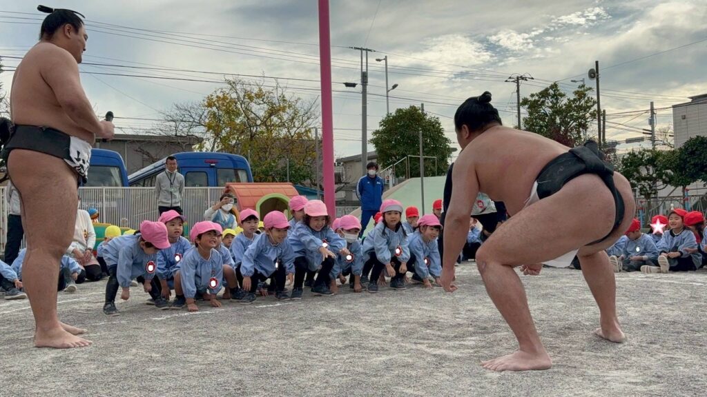 子どもたちもとても楽しみにしていたので、この日の朝は「お相撲さんくるよね!」と、