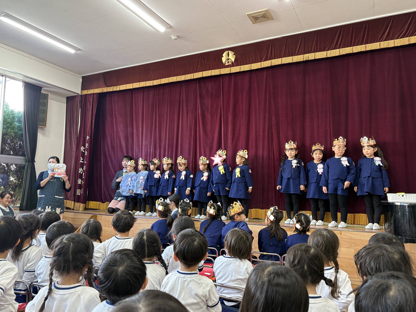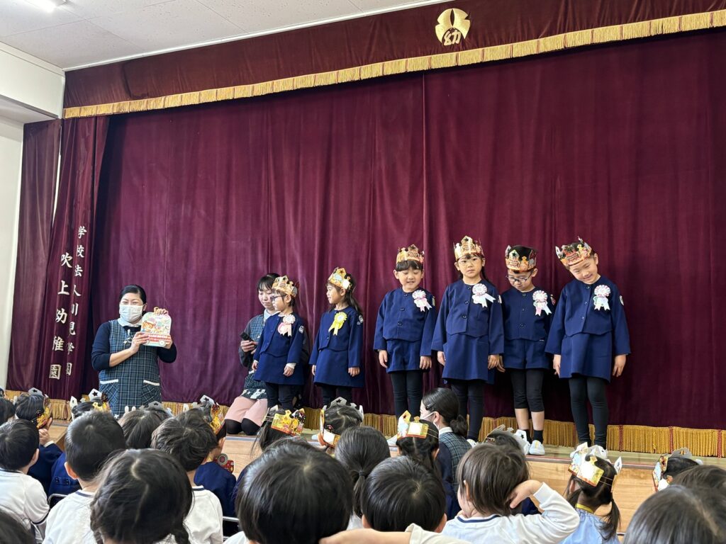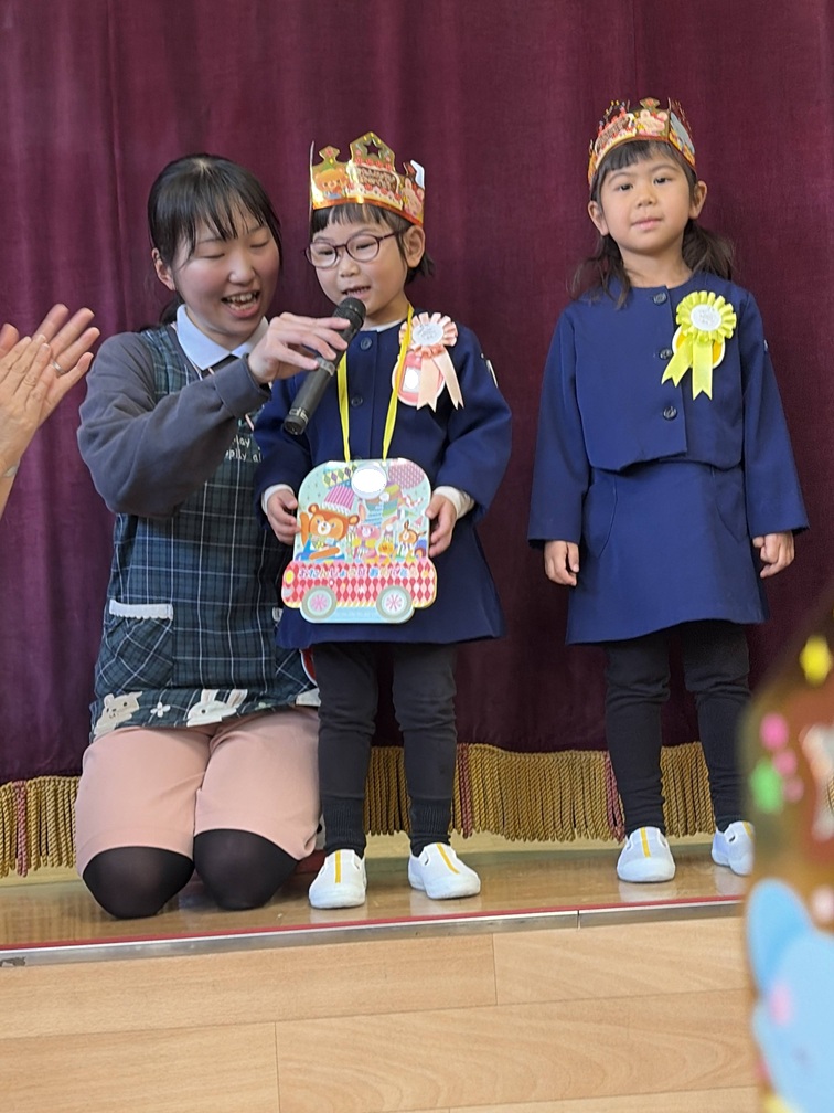 園長先生からメダルのプレゼントをもらったあとは、季節の歌「ゆき」と「お誕生日はうれしいな」を全園児で元気いっぱい歌いました🎶