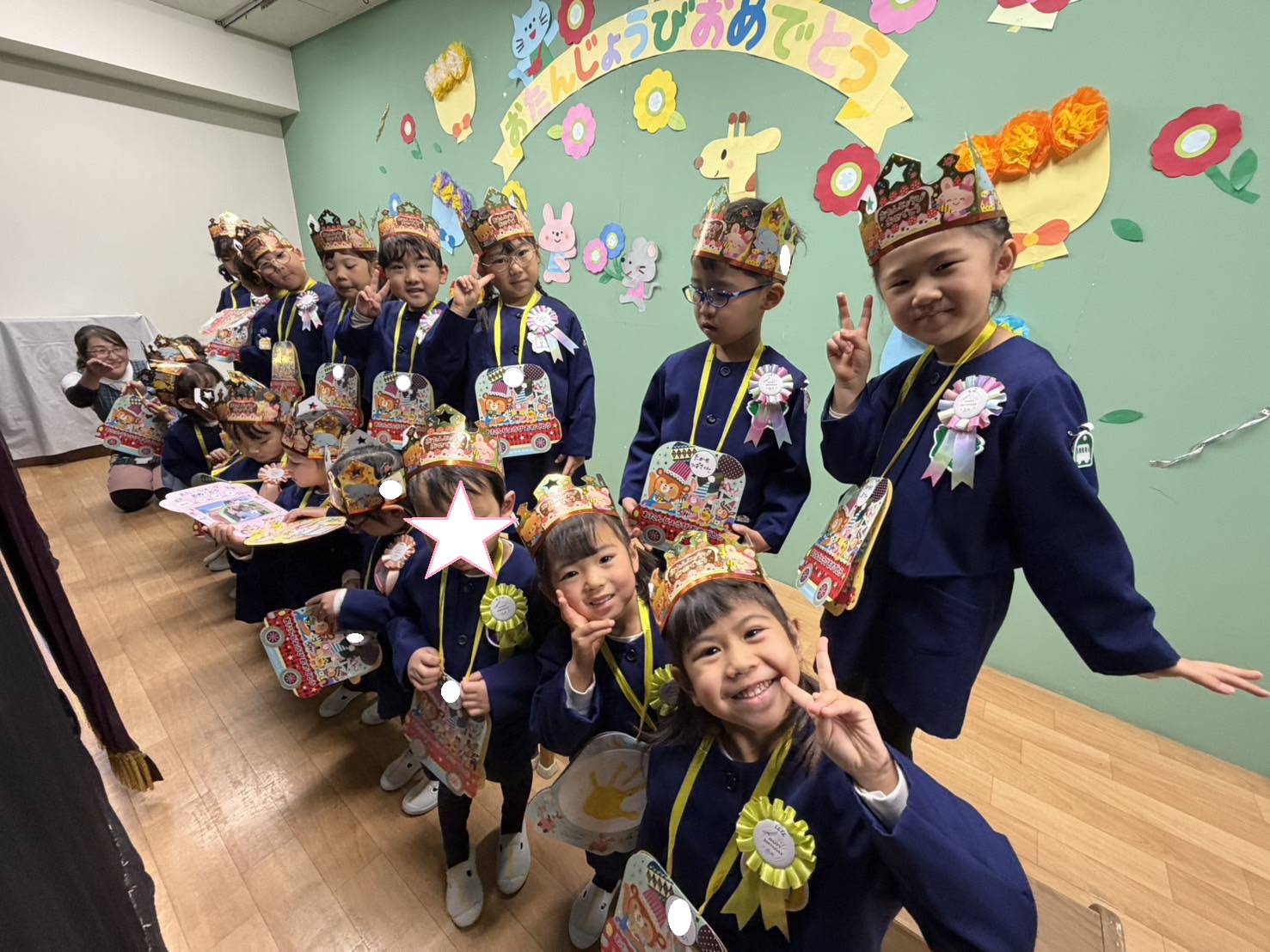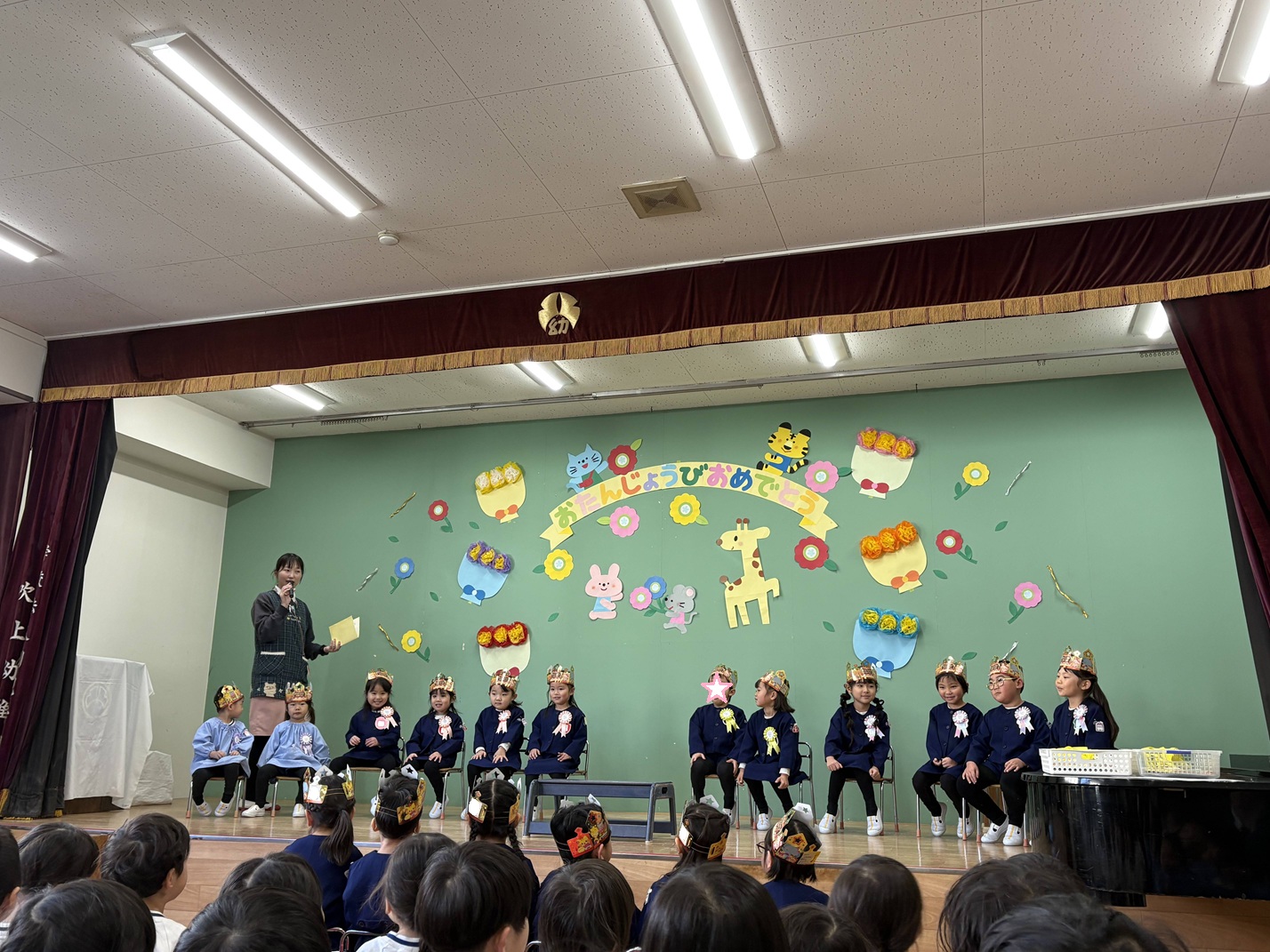 全園児ホールに集まり、お祝いをしました!