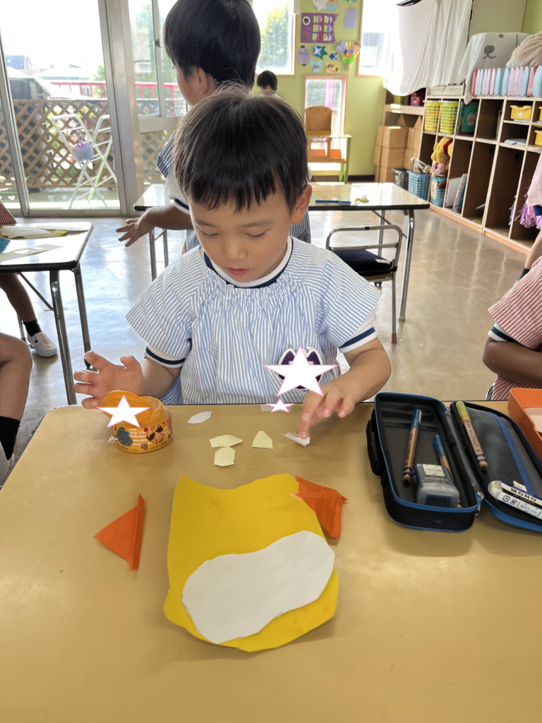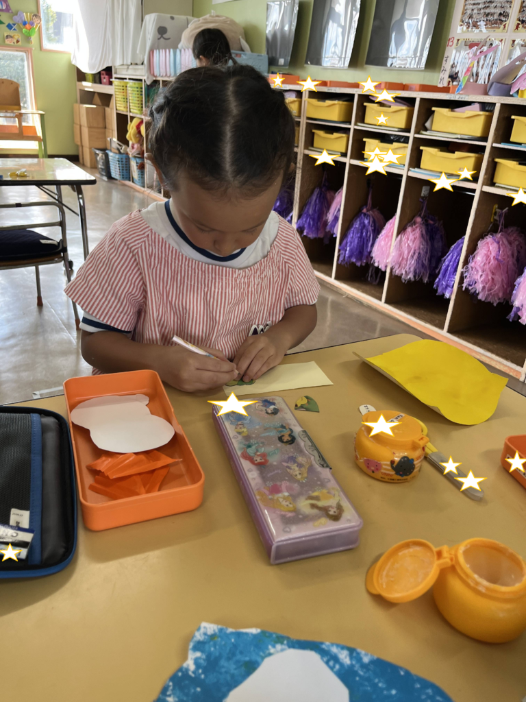 1人で押さえることが大変なときにはお友達と協力して型紙を押さえてもらい型を取っている姿も見られました👀