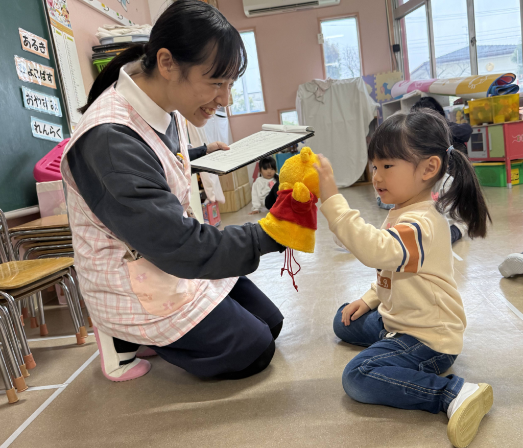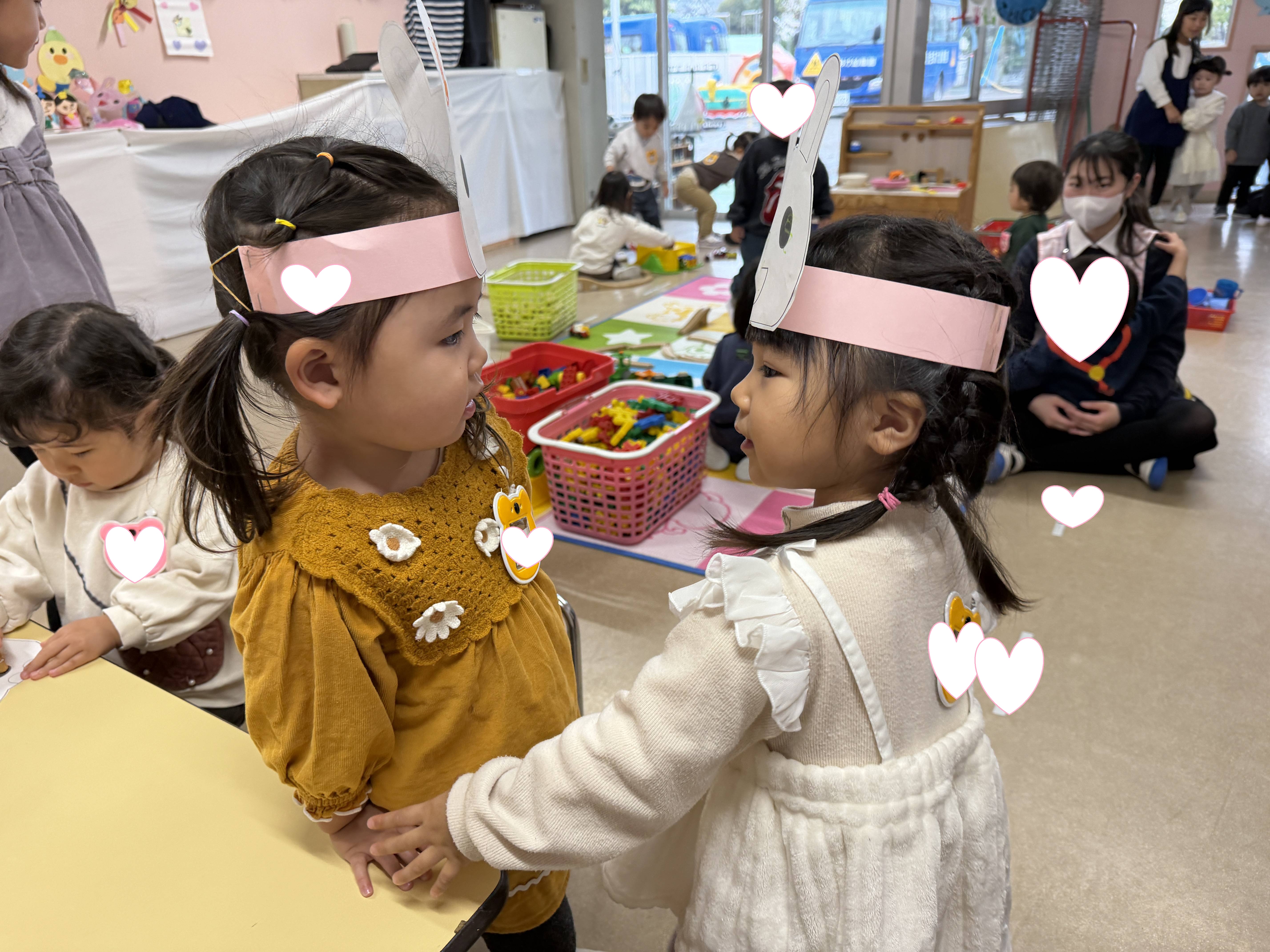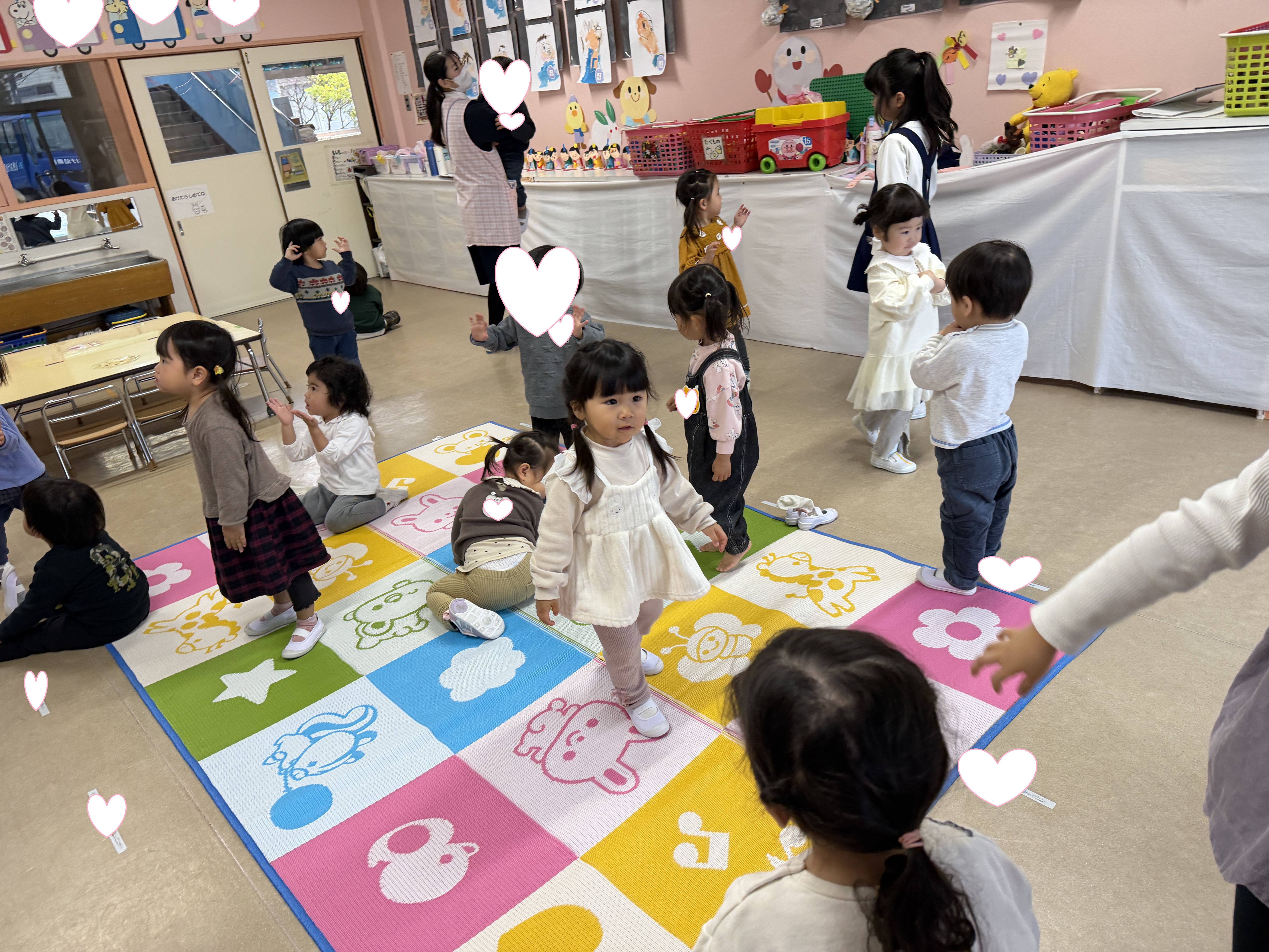 ちょっぴりドキドキしながらも、「どんなおもちゃがあるかな?」「なんのお歌かな?」「どんなお友だちがいるかな?」と、それぞれ楽しみな気持ちを持って保護者の方と登園してくれました💞