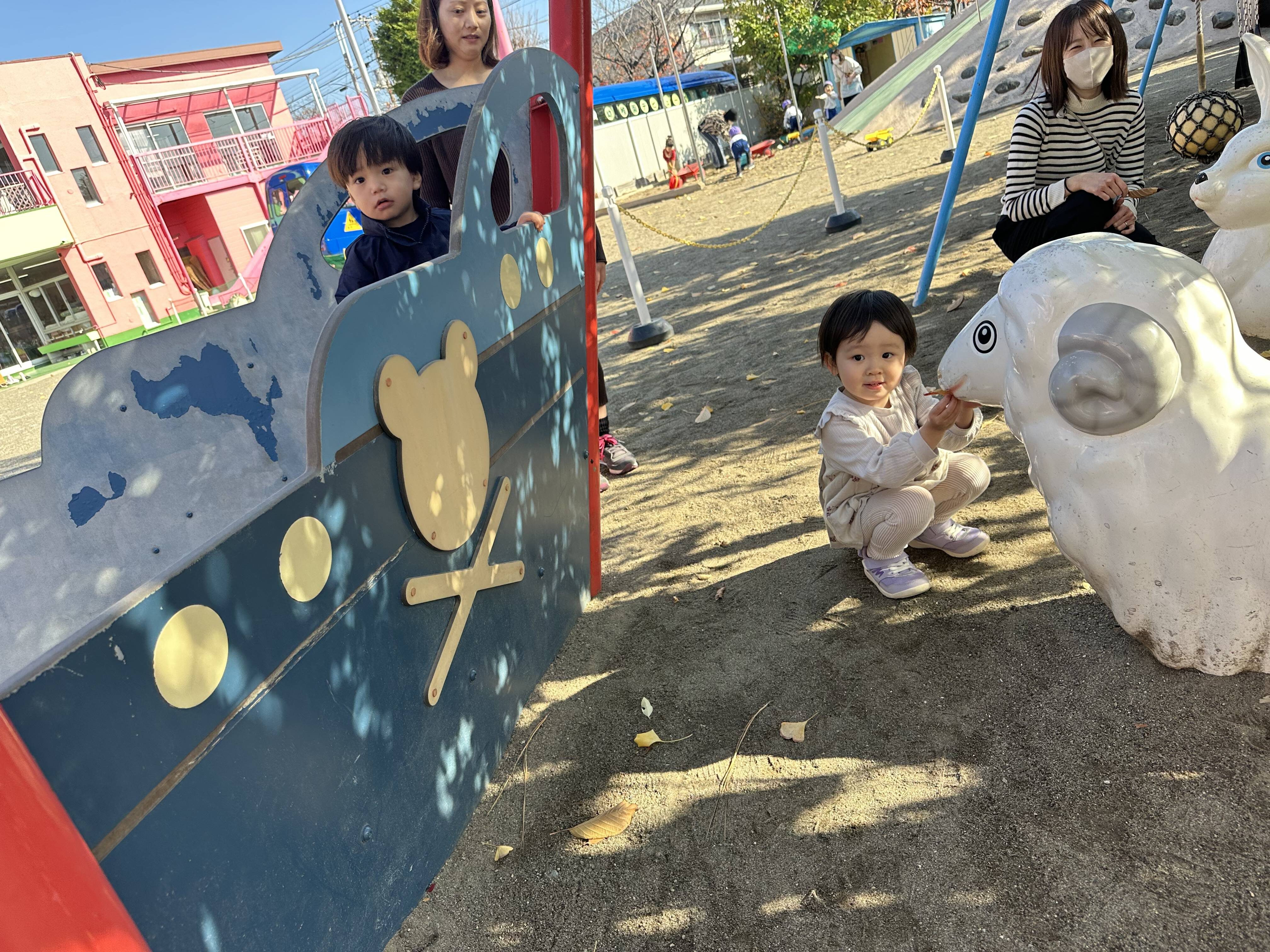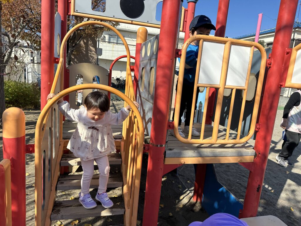 また、同じ時間に戸外遊びをしていた在園児クラスのお兄さん、お姉さんとも一緒に遊ぶ事ができましたね🌟