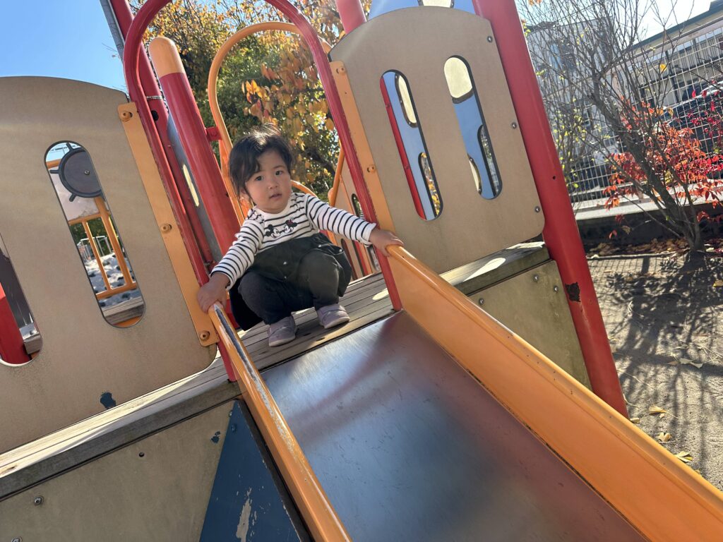 イチョウや紅葉を見つけて集めてみたり、園庭の遊具を楽しむ事ができ、