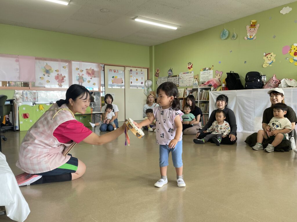 お部屋で好きな遊び、親子でふれあい体操を行い、