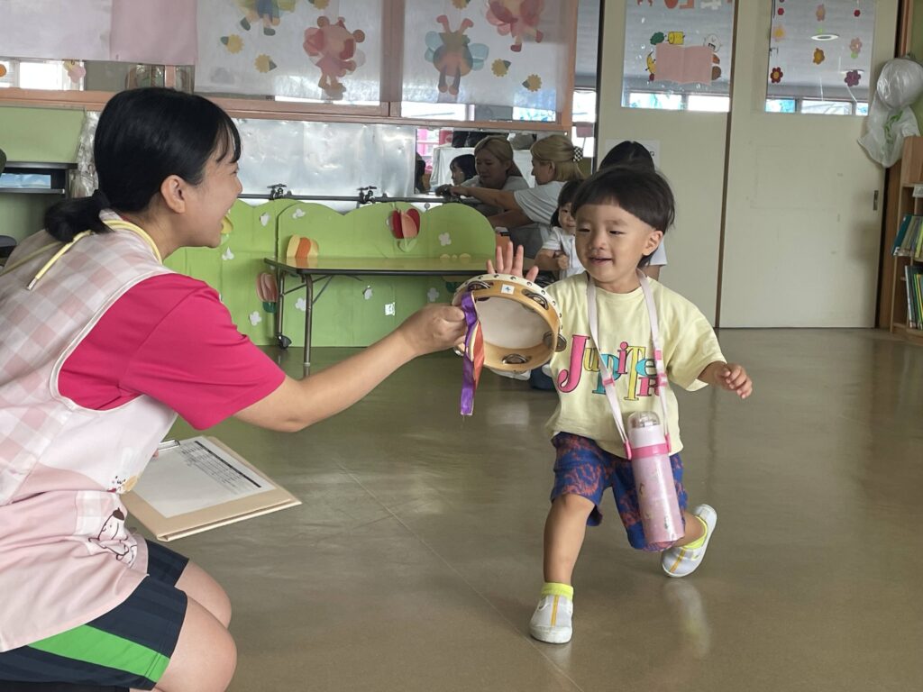 他にもトランポリンを使った運動やフラフープでの色探しゲームも行いました🎵