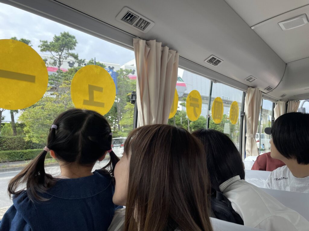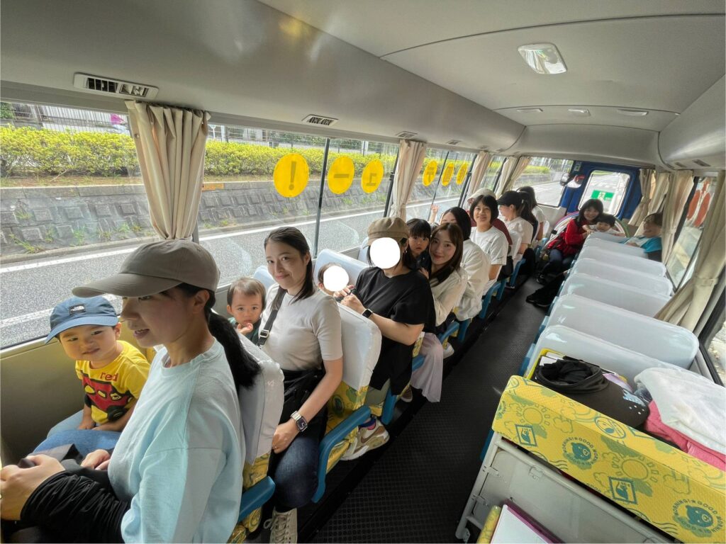 園バスに保護者様と一緒に乗ることができる機会は入園後もないので、このプログラムだけ!!早速バスに乗り込むと「ちっちゃ~い!」「可愛い!」大人には小さく感じる可愛い椅子にお子様と一緒に座っていただき、園長先生に「行ってきま~す!」のバイバイをして出発進行~!!