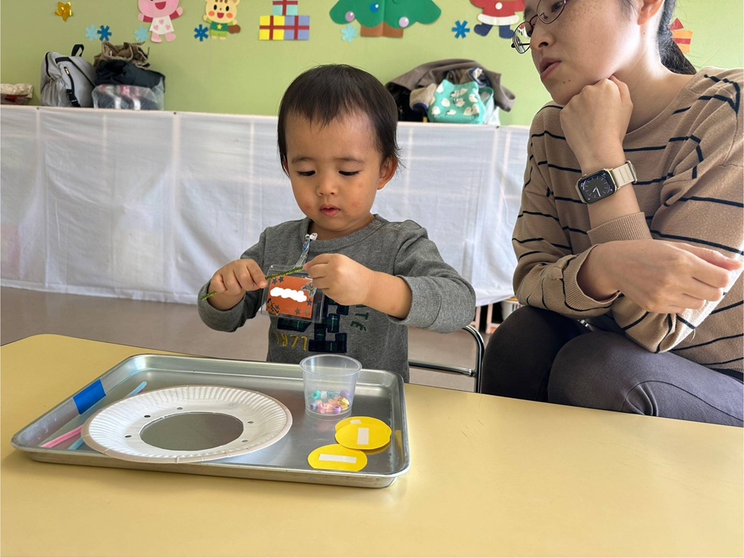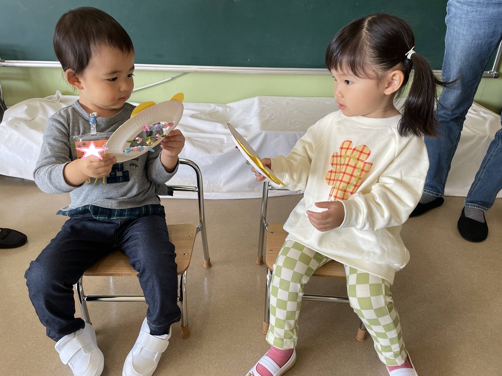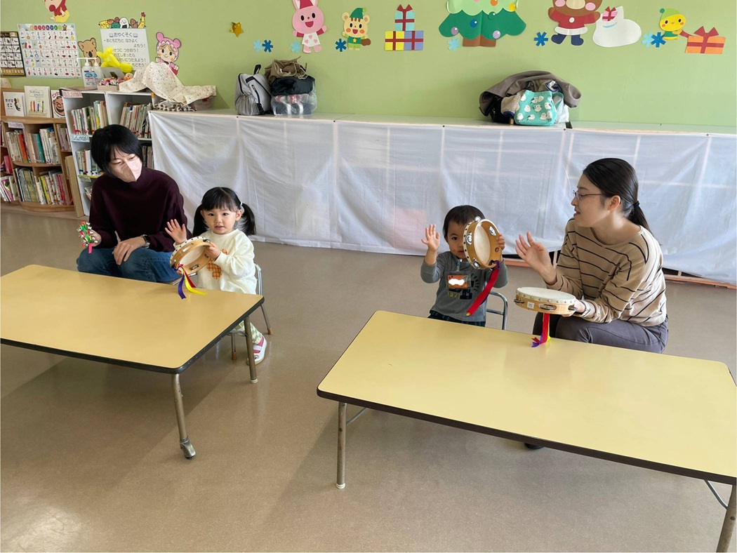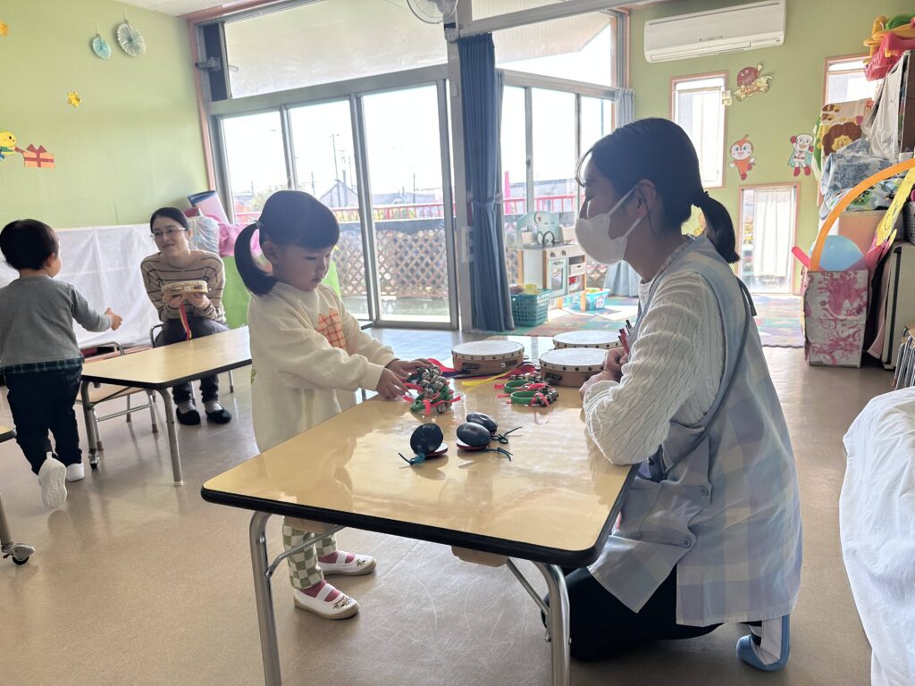 「珍しく少人数だったので、ゆっくり充実した時間を過ごせました。先生方と子どもたちで楽しくお話しながら活動できていたので成長を実感できました。」「音楽に合わせて楽しそうにしている姿を見ることができ、家での遊びにも繋げられると思いました。ありがとうございました。」と感想をいただきました✨