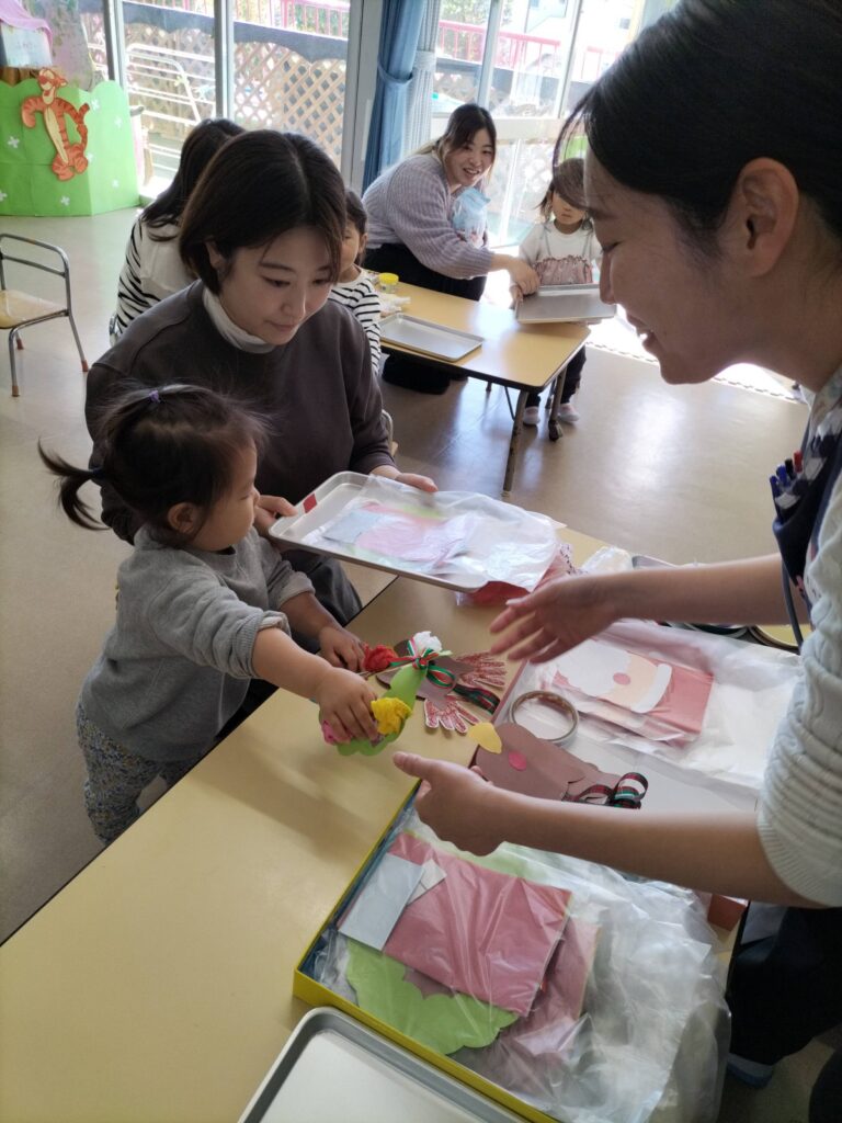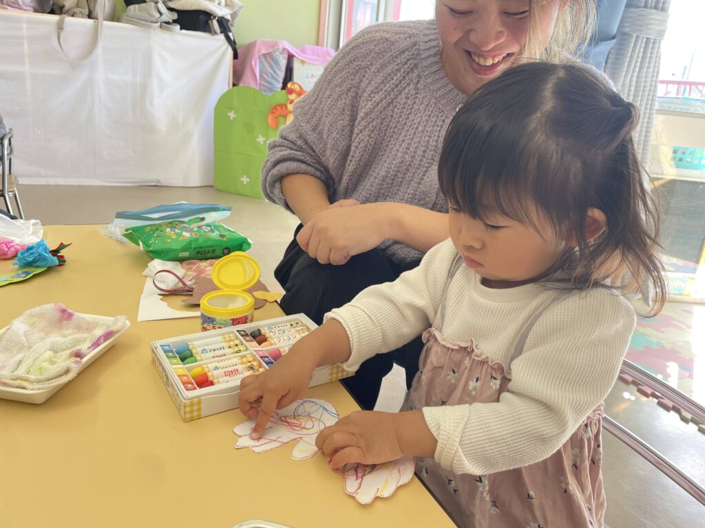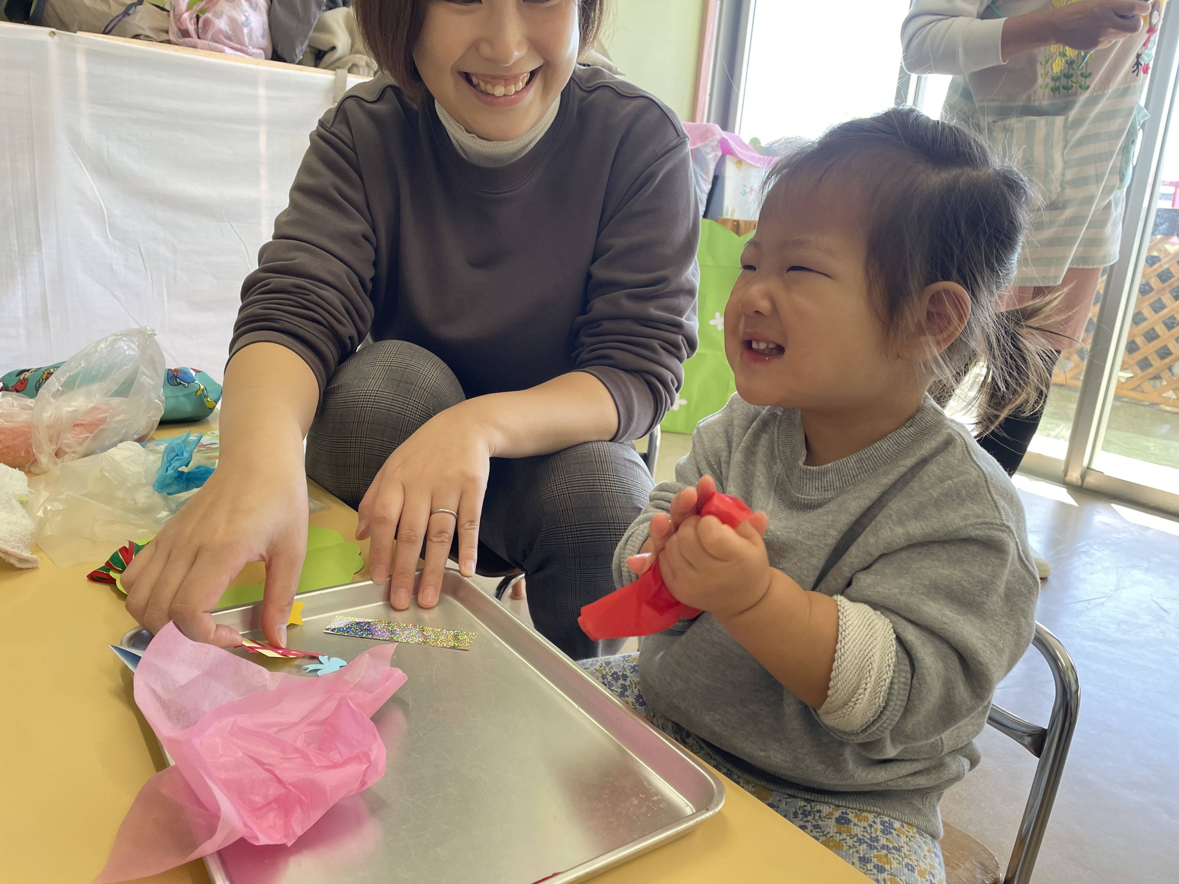 ご参加いただいた保護者様からは、「子どもの簡単な作業だけでとても可愛い作品を作らせていただき、親子で楽しかったです。細かい作業等ありがとうございます。」「季節を感じられる制作が盛り沢山で、とても楽しく参加できました。いつも子どもたちが楽しめるように考えてくださってありがとうございます。」「ぐずぐずしながらも自分の興味のあることは楽しみながらやっています。いつも一人ひとりのペースに合わせて見守ってくださり、ありがとうございます。」等といった感想をいただきました。いつも温かい感想ありがとうございます。