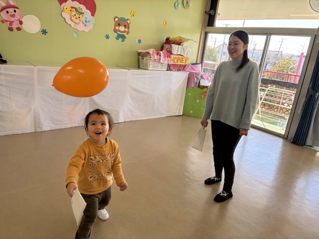 2歳児のお友達でも楽しむことができるように、羽ではなく風船です🎈