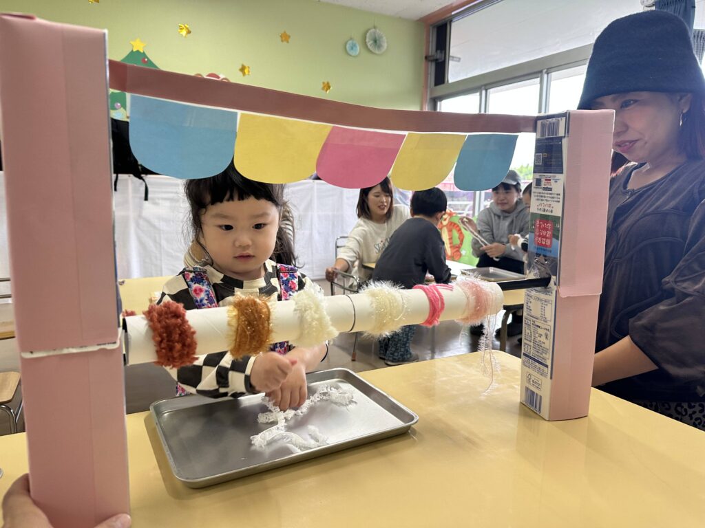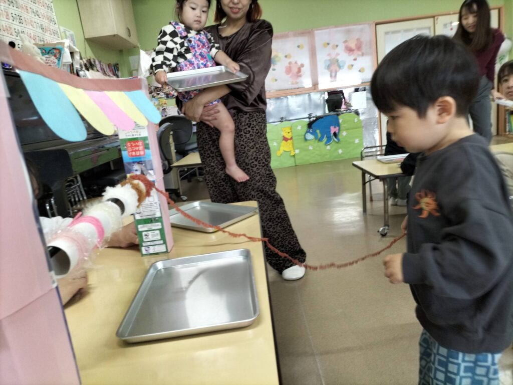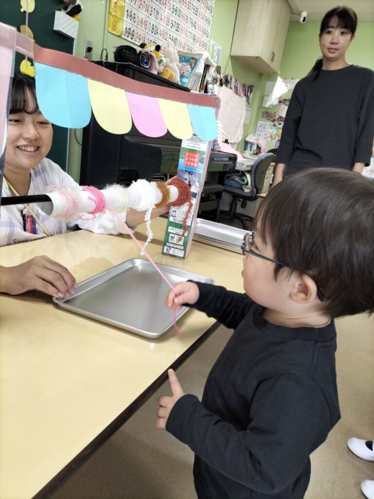 先生が毛糸屋さんに変身して、みんなはお客さんになってお買い物に来てくれました💓