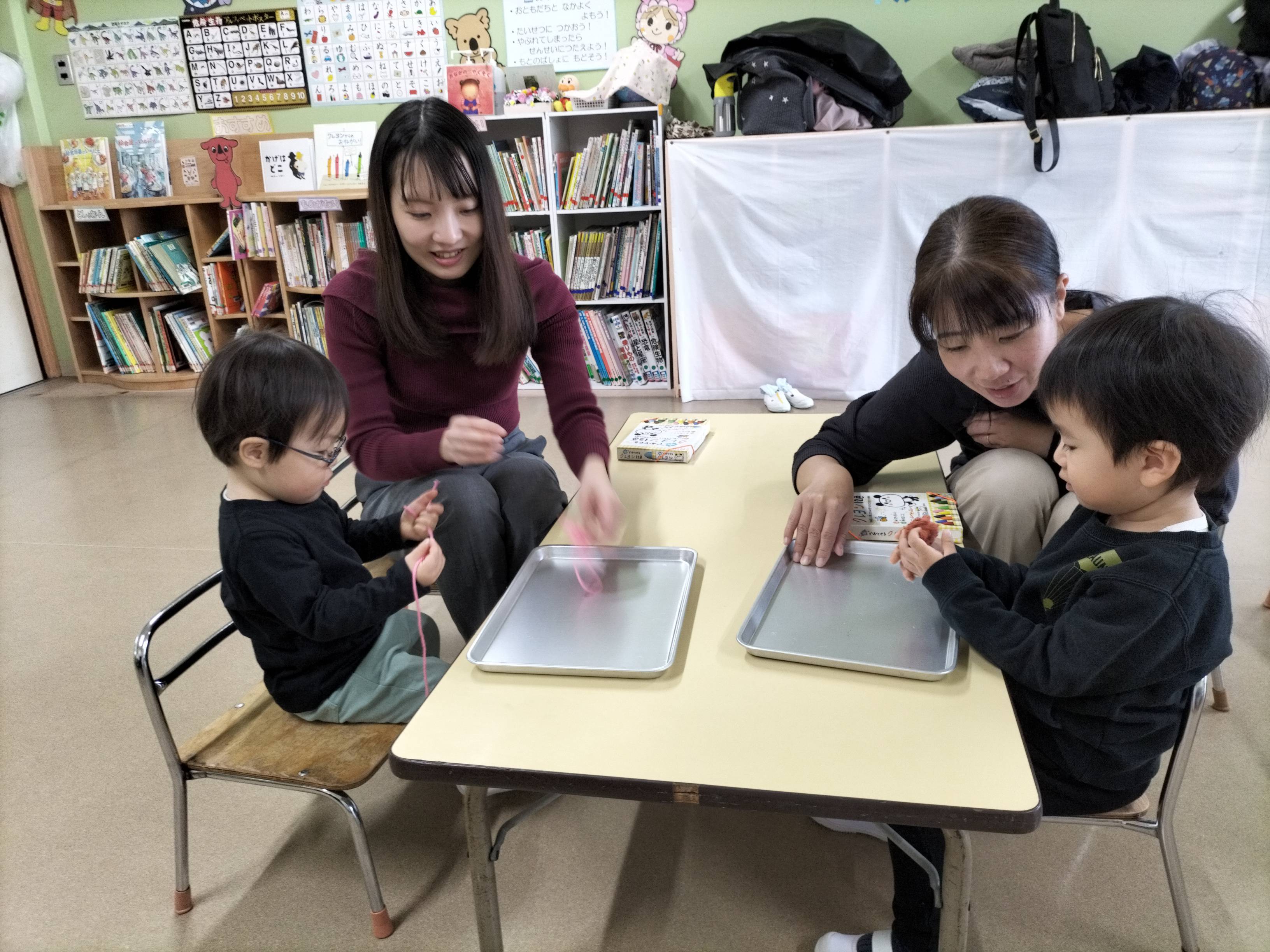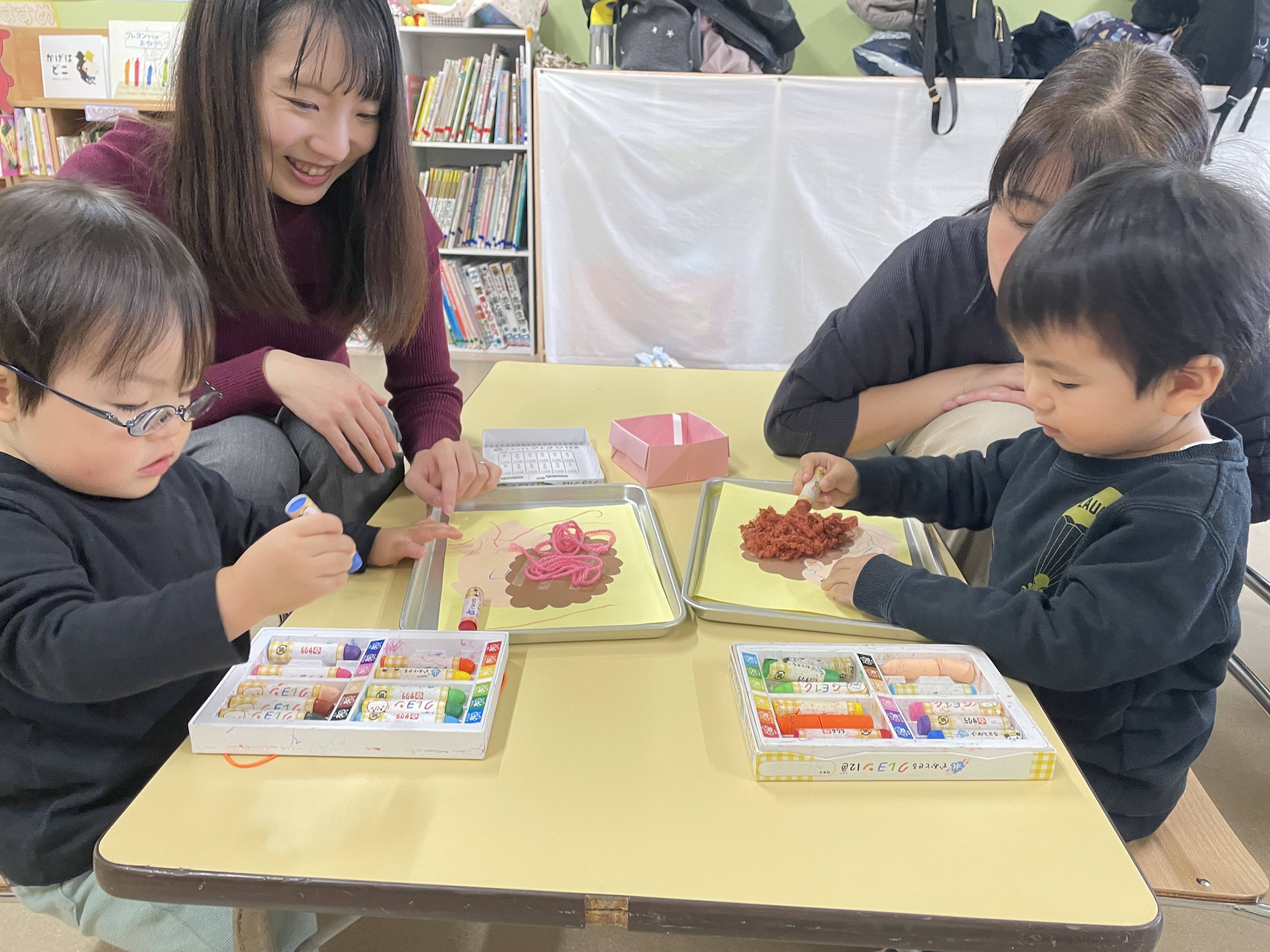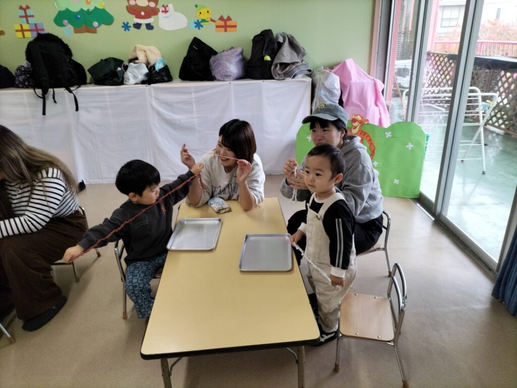 丸めてみたり、伸ばしてみたり、いとまきのお歌を歌いながら楽しんでいました🎵