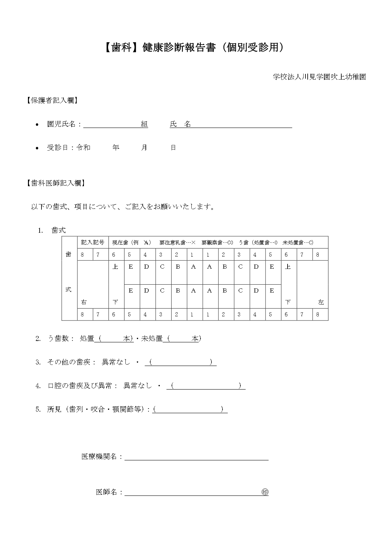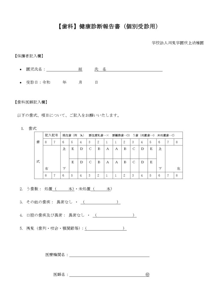 HOME >  【歯科】健康診断報告書(個別受診用)