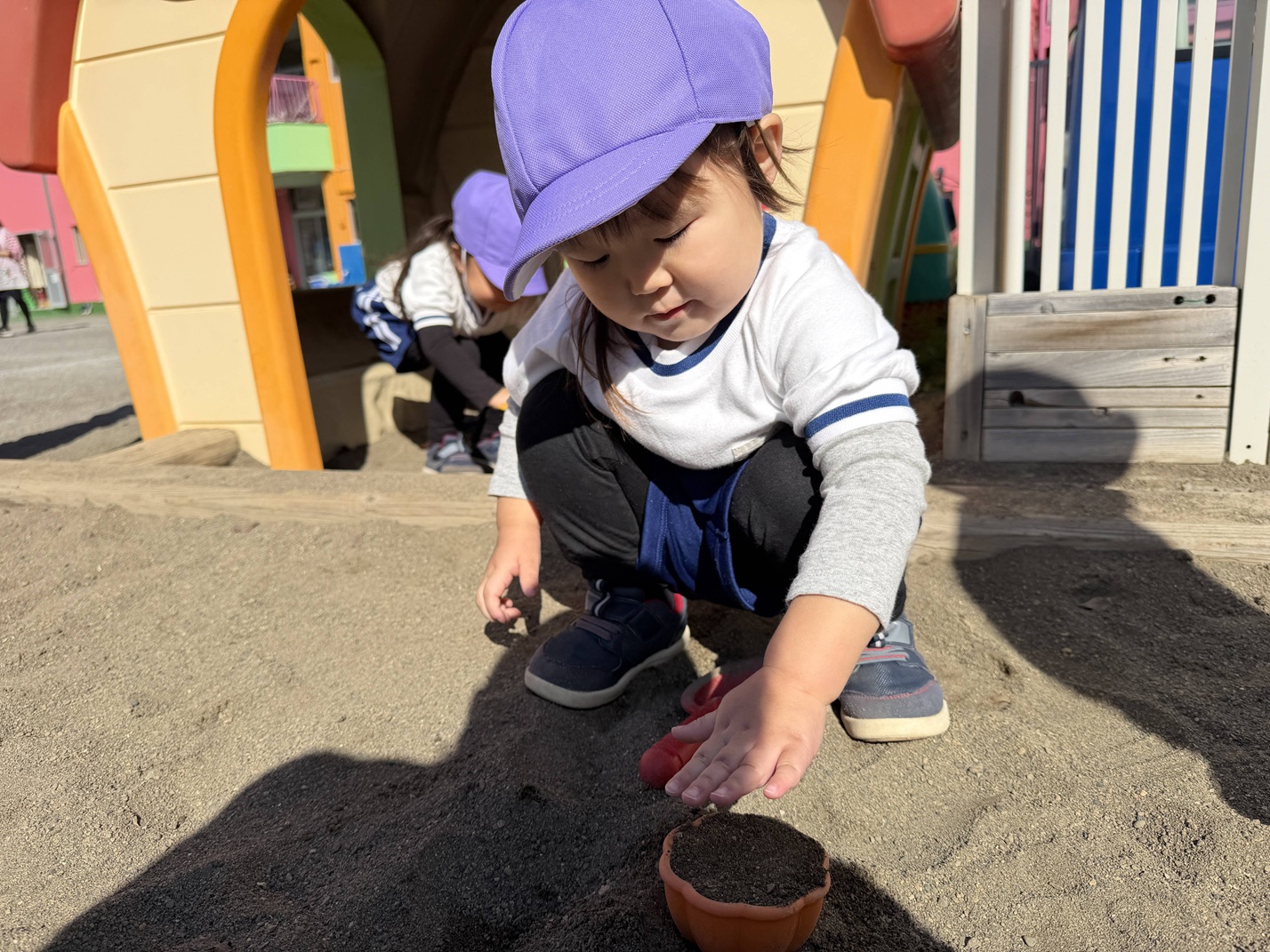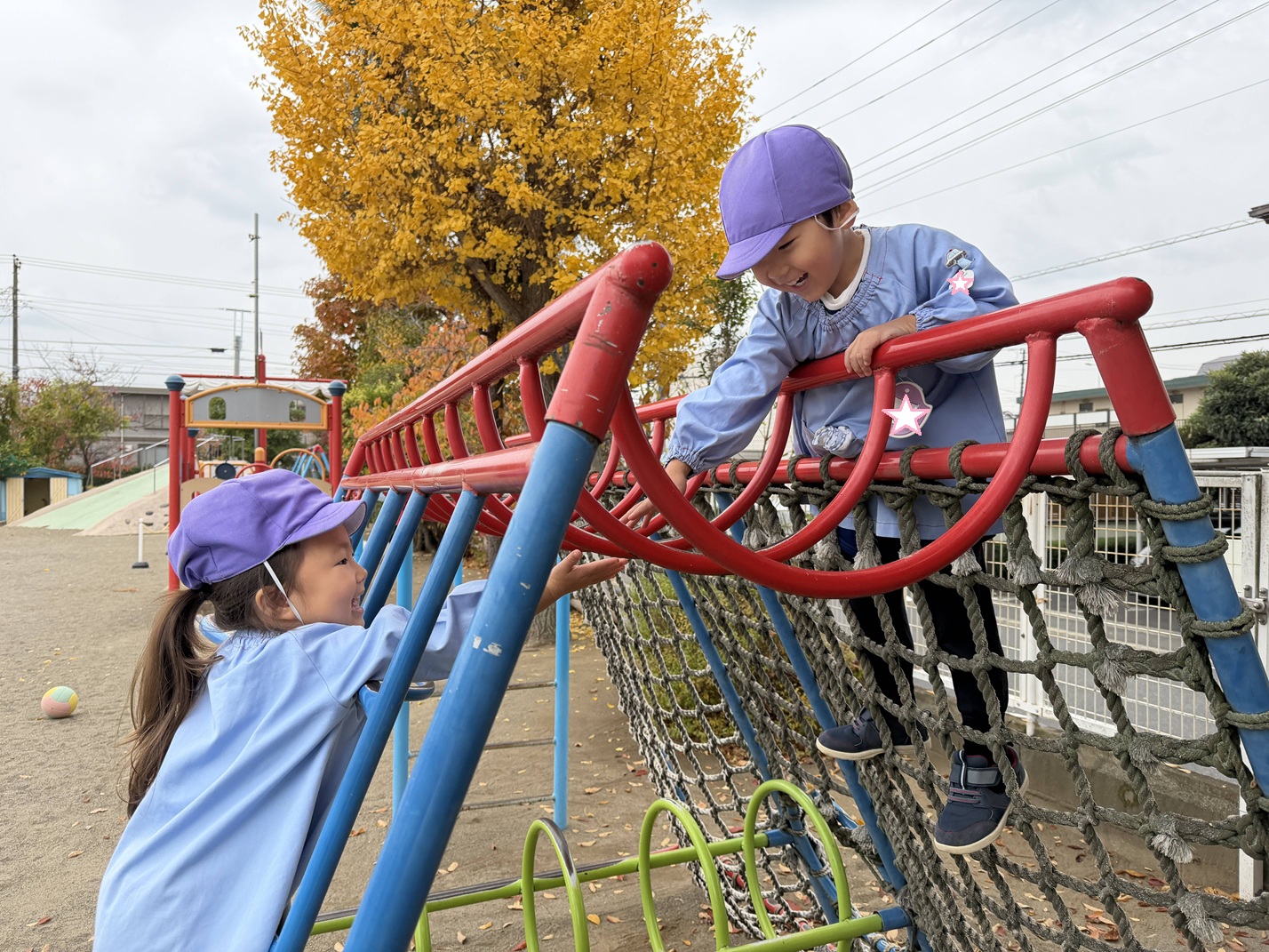 外に出ると「今日は何して遊ぼうかな?」お友達に「一緒に遊ぼう!」と声をかけたり、ワクワクした表情を見せ、思い思いの遊びへ向かっていきます!