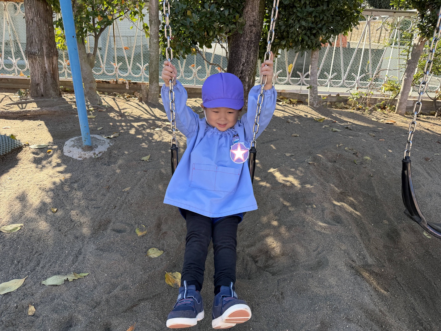 ブランコでは「先生押して!」と楽しむ姿や、順番待ちをしている子は「123・・・」と