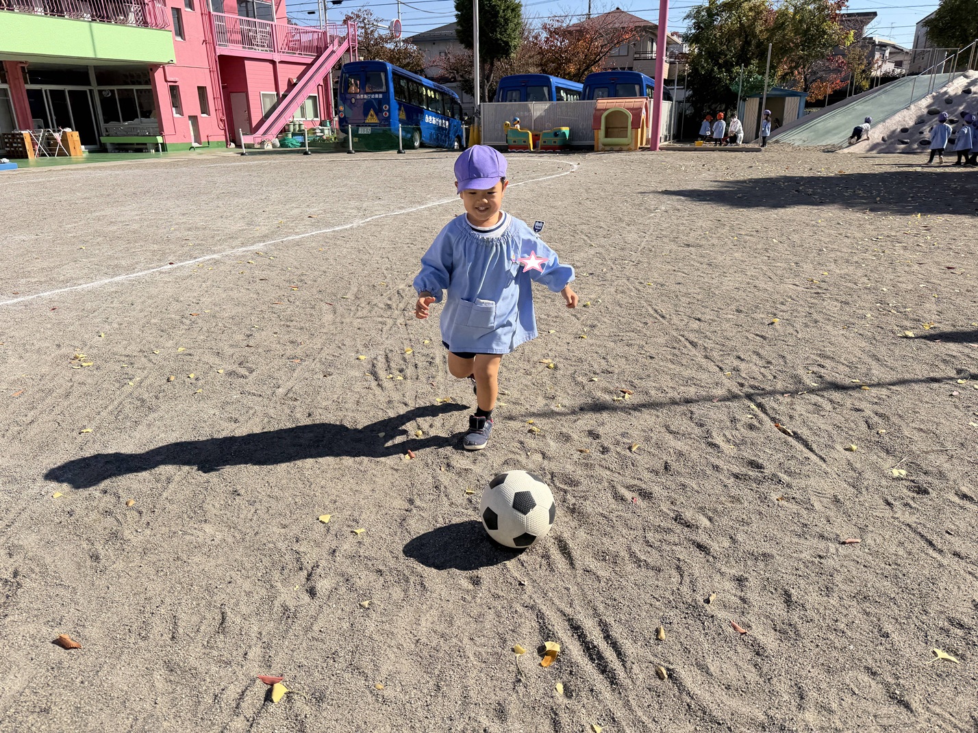 「まてまて~!」と追いかけっこが始まり、サッカーでは、ボールを必死に追いかけたりと、笑い声を響かせながら思い切り走り回っています!