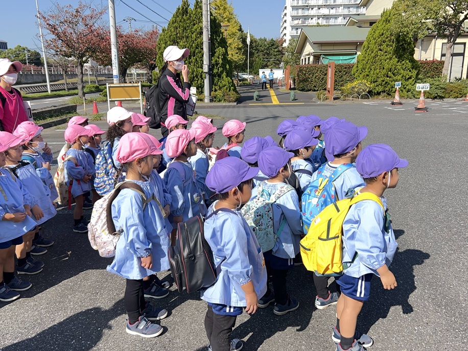 そんな絶好の遠足日和に、満3歳児ことり組と年少のどんぐり組・きのこ組の子どもたちが浦安市交通公園へ秋の遠足へ行ってきました🍂