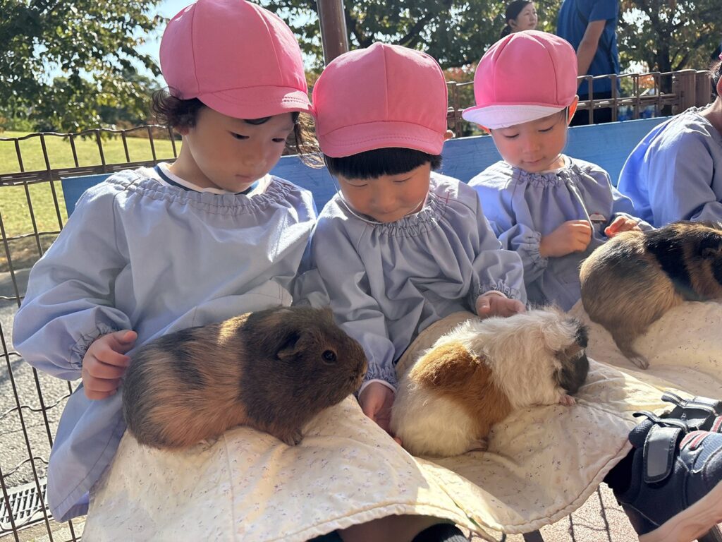 モルモットを抱っこさせてもらうと、「ふわふわ~!」「あったかいね」と笑顔がこぼれ、先生たちもほっこり♡