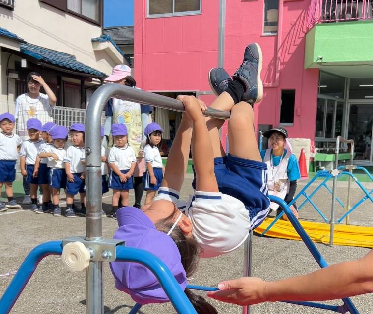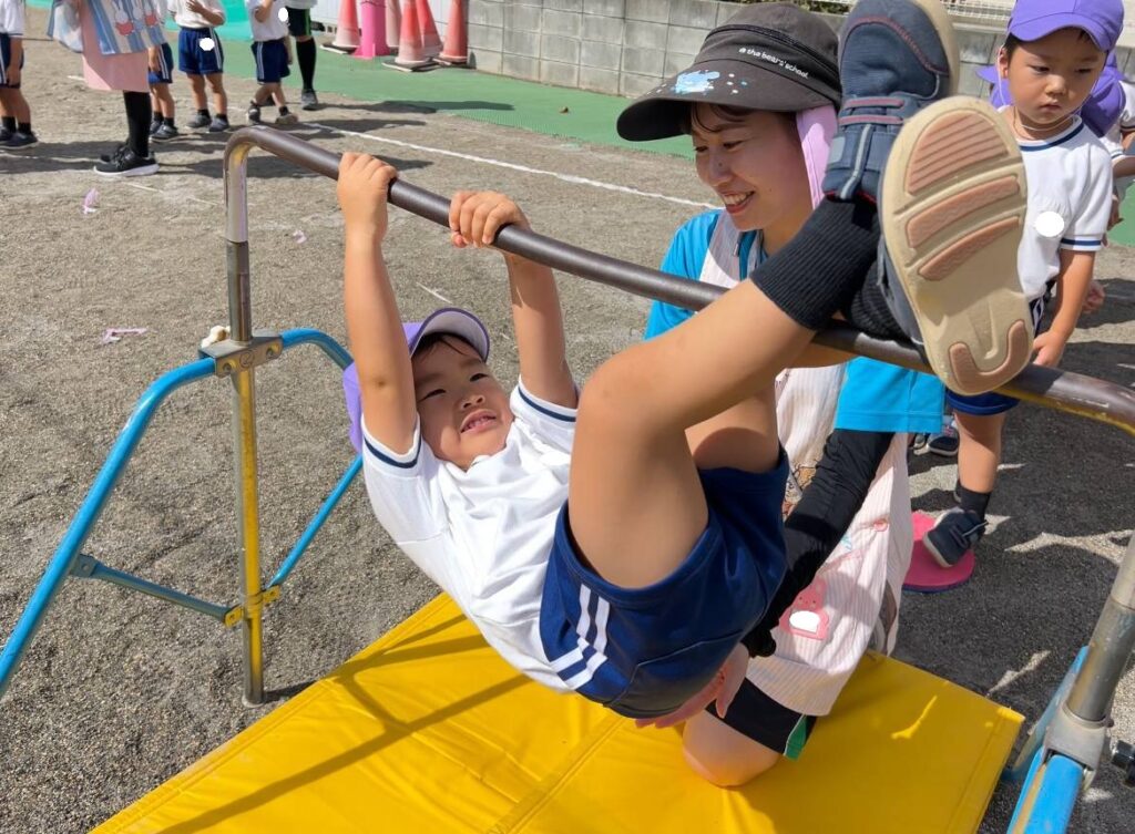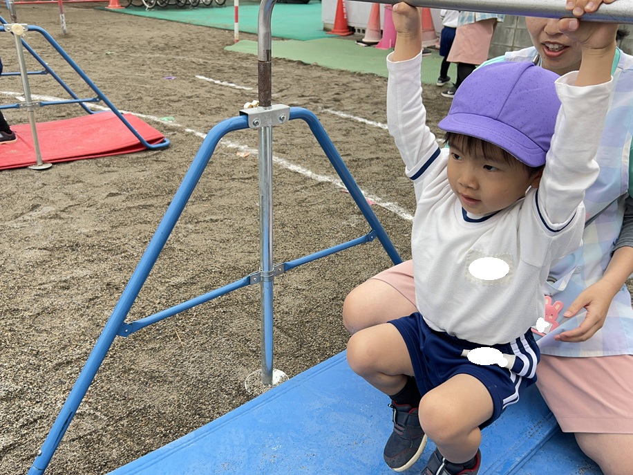 落ちないように、小さな手で鉄棒をぎゅっと握り頑張っている姿がとてもかっこいいです♪