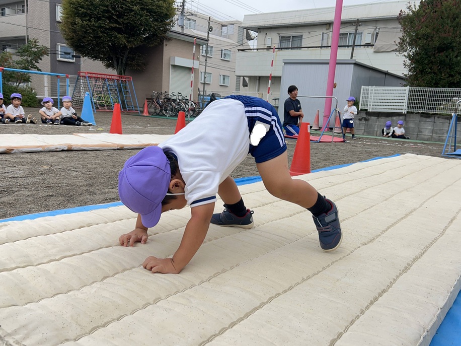 鉄棒の次はマットの上をペンギン歩きとくまさん歩き!