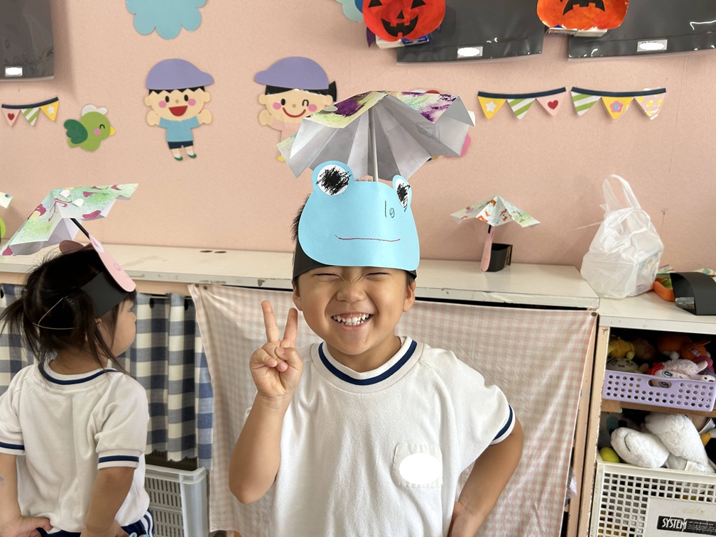 ことりリズムでは、自分たちで作ったカエルのお面をつけて踊ります🐸