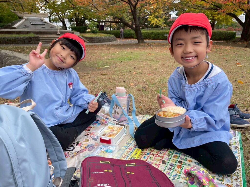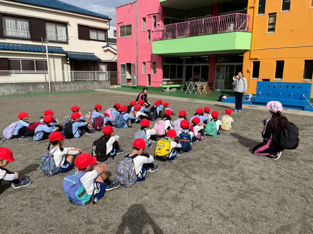 少し肌寒さを感じる朝でしたが、今日の日を楽しみにしていた子どもたちにはその寒さも感じられないくらい、元気いっぱい秋の遠足に出発しました!