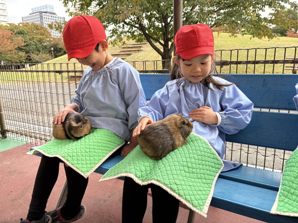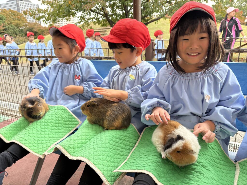 動物のコーナーでは、ヤギやポニー、カピバラやカンガルー、ジャイアントうさぎなどの動物たちを間近で見たり、モルモットの触れ合いをさせてもらいました。