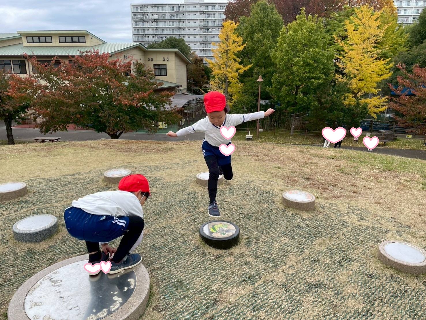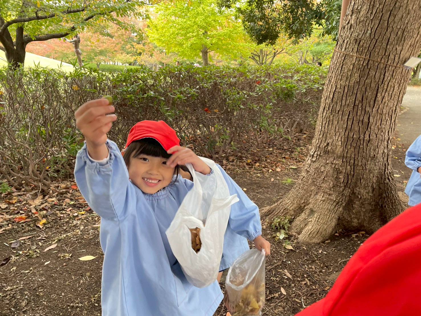 公園内ではどんぐり拾いや落ち葉集めをしながら秋の自然を満喫🍂